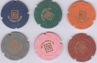 denominated chips and a commemorative (both sides shown). |