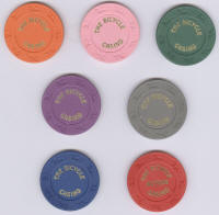 Bicycle Casino lot of 7 un-notched chips, presumably for