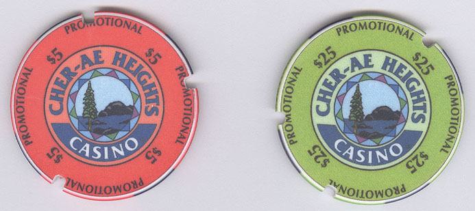 Cher-Ae Heights pair of ncv promo chips. |