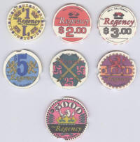 Regency Bell set of 6 chips to $100 and a single $5,000. |