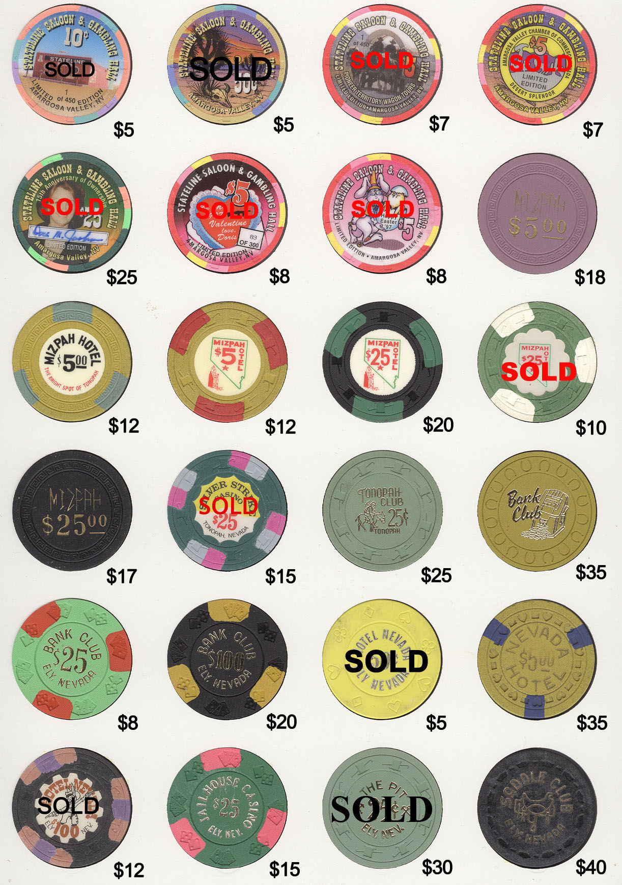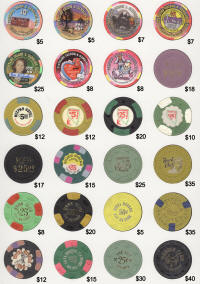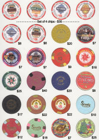 OBSOLETE LAS VEGAS & NEVADA CHIPS The items shown below are all available to purchase at the prices marked. There is a minimum order value of $25 (unless you are happy to pay actual international shipping costs on top). For orders from $25 but under $50, a flat rate $10 shipping will be added. Orders $50 - $100 will have $5 flat rate shipping. Orders $100 and over will ship free. Email me if you are interested in any of these. (click on thumbnails to see full size images) |